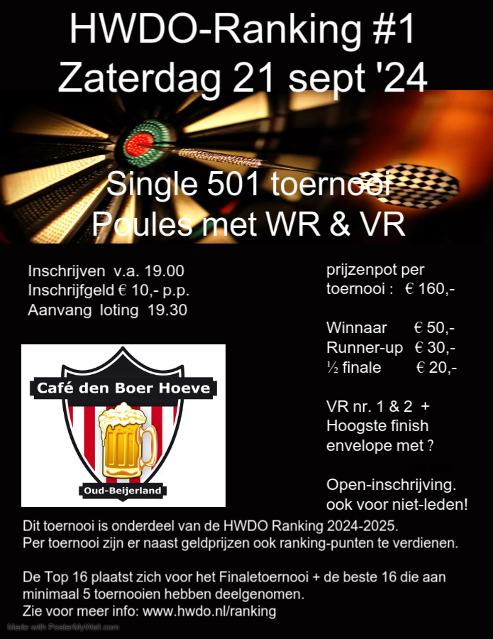 Ook dit seizoen zullen er weer een aantal HWDO Ranking toernooien gespeeld worden.